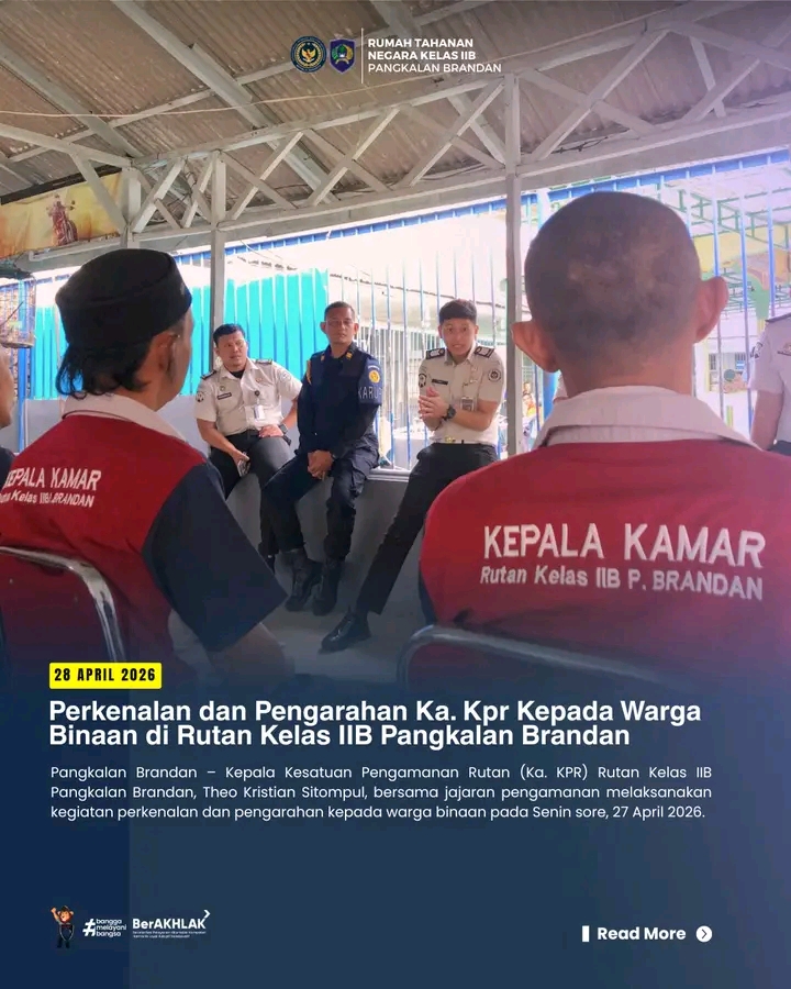 Pangkalan Brandan-Bhinnekanews.id Kepala Kesatuan Pengamanan Rutan (Ka. KPR) Rutan Kelas IIB Pangkalan Brandan, Theo Kristian Sitompul, bersama jajaran pengamanan melaksanakan kegiatan perkenalan dan pengarahan kepada warga binaan pada Senin sore, 27 April 2026.