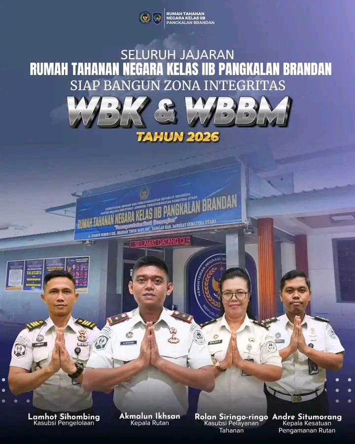 Sebagai bagian dari upaya berkelanjutan dalam reformasi birokrasi di lingkungan Pemasyarakatan, Rutan Pangkalan Brandan meneguhkan langkah strategis dalam pembangunan Zona Integritas menuju predikat Wilayah Bebas dari Korupsi (WBK) Tahun 2026. Komitmen ini bukan sekadar pernyataan, melainkan diwujudkan melalui kerja nyata yang terukur, konsisten, dan berkesinambungan.