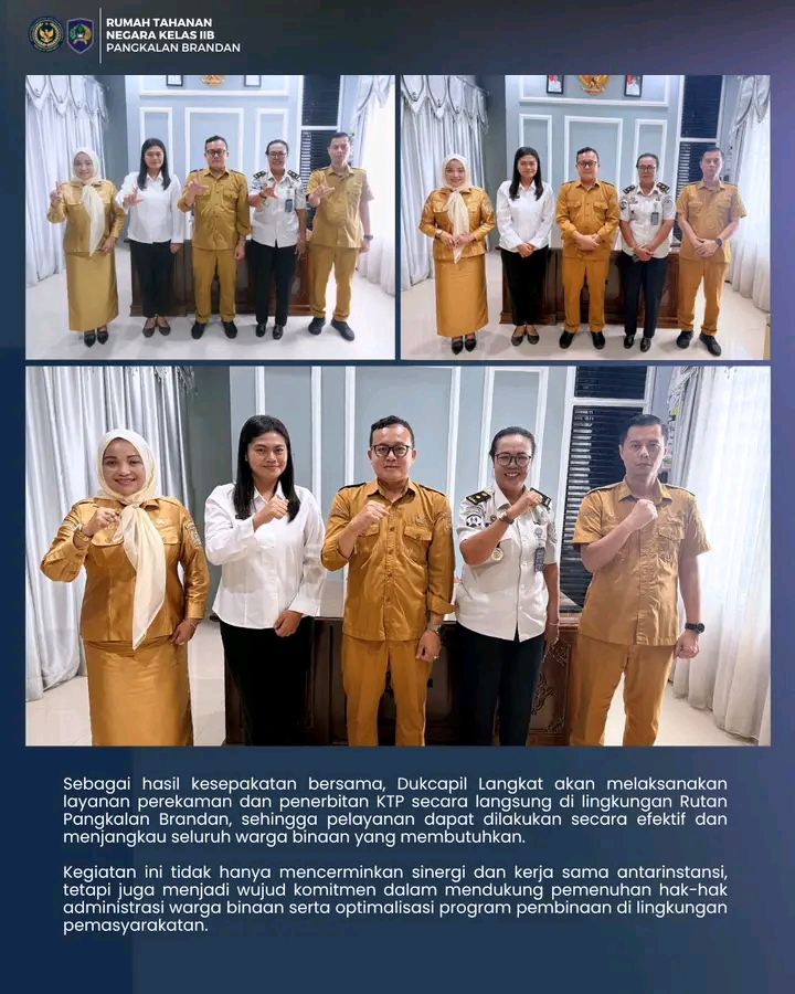 Rutan Pangkalan Brandan melaksanakan kegiatan koordinasi dengan Dinas Kependudukan dan Pencatatan Sipil (DUKCAPIL) Kabupaten Langkat dalam rangka pemenuhan dokumen administrasi kependudukan bagi warga binaan (14/04/2026).